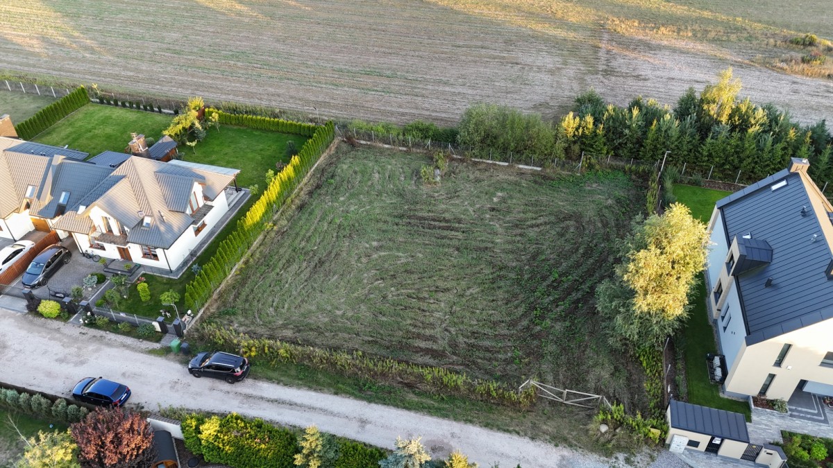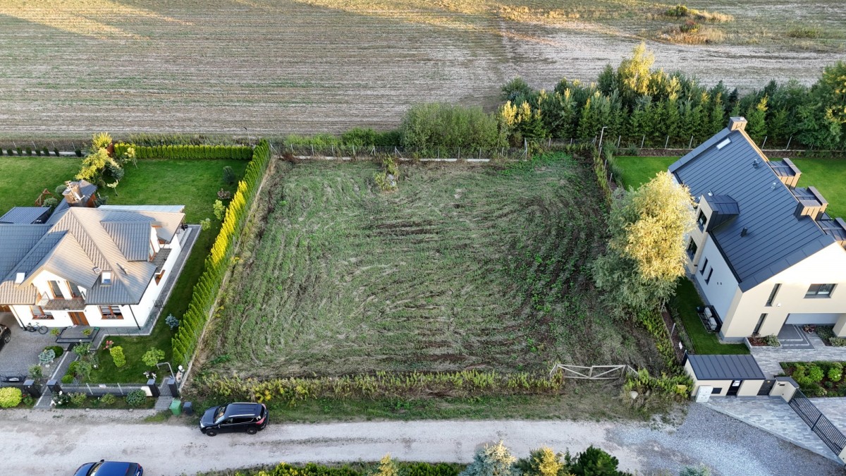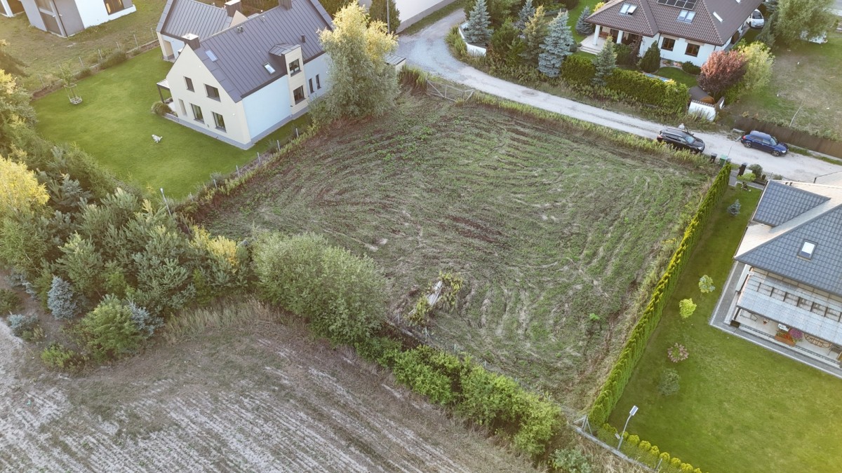 Teren jest płaski i suchy, a przy działce są wszystkie media: światłowód, wodociąg, kanalizacja, gaz i prąd.