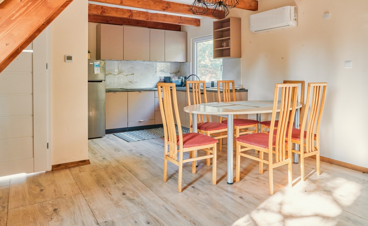- Gotowy biznes – w pełni wyposażone dwa domki pod wynajem, które od pierwszego dnia mogą na siebie pracować, na działce jest miejsce również na pięć domków. Pierwsze dwa są w pełni wykończone, umeblowane i wyposażone w nowoczesne udogodnienia, w tym bezkluczykowy dostęp oraz monitoring, są ocieplone i dostosowany do komfortowego noclegu dla 4-5 osób. Posiadają klimatyzację. Na parterze domków znajduje się salon z aneksem kuchennym i łazienką, a na pierwszym piętrze znajdują się dwie niezależne sypialnie. Domki są wyposażone w nowe meble oraz sprzęt AGD.