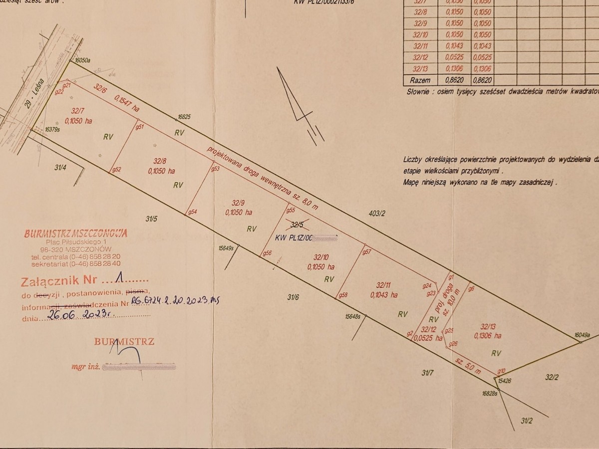 Na sprzedaż działka budowlana- mieszkaniowa o powierzchni 8600 m2, która została już podzielona na 6 działek z wytyczoną drogą dojazdową o szerokości 8 metrów.