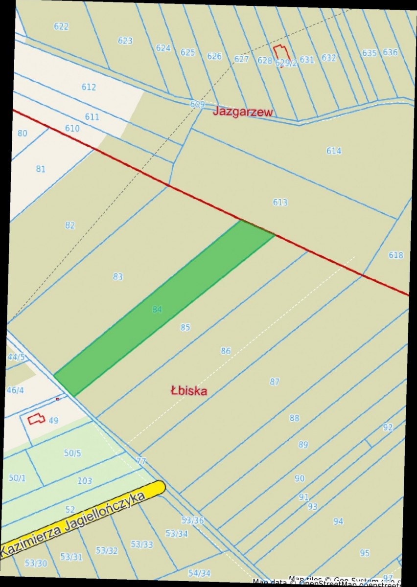 Numer ewidencyjny działki to 84 w obrębie Łbiska.