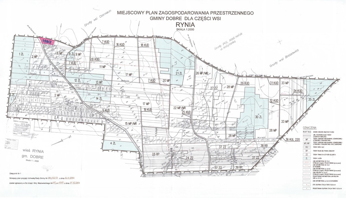 Rynia, Gmina Dobre, powiat miński. Działka nr 159/2, 4 461m2, szerokość: 43,5m, głębokość: 87,5/133m.