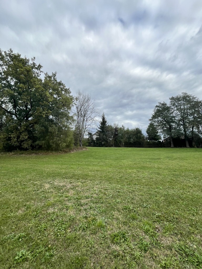 Działki są płaskie, nieogrodzone, porośnięte trawą oraz starymi drzewami, które tworzą naturalny, zielony krajobraz i dają poczucie prywatności.
