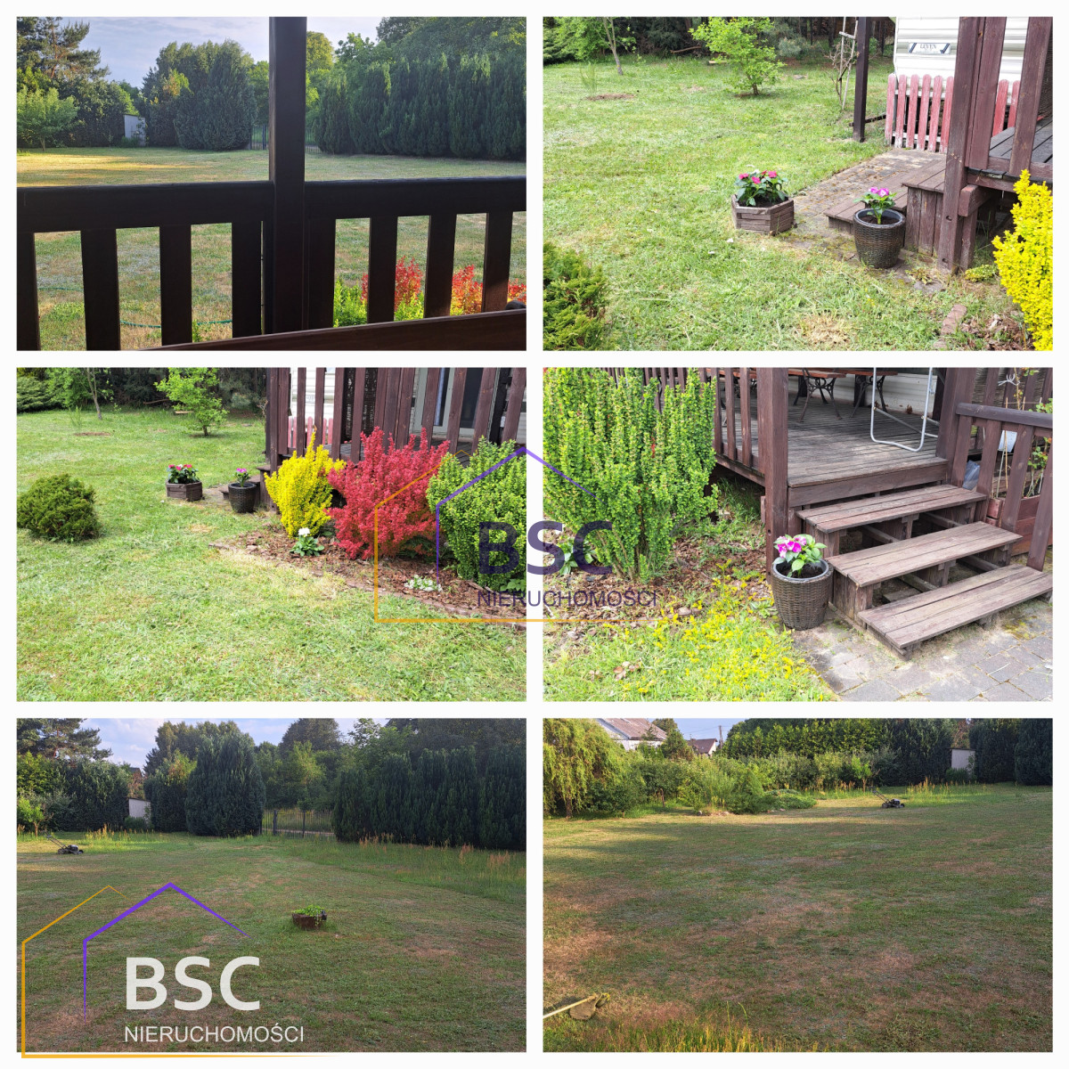 Cały teren jest ogrodzony siatką, a zasadzenia drzew, krzewów i tui stanowi przyjemne uzupełnienie całości. Na działce posadowiony jest domek typu holenderskiego (przyczepa holenderska) z przyjemną werandą.