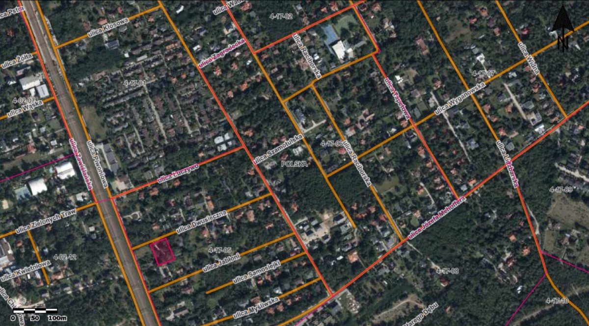 Do sprzedaży działka o powierzchni 2173m2 przy ul. Dwusiecznej, na warszawskiej Choszczówce. Szerokość działki 40m od ulicy, głębokość 51,5m.