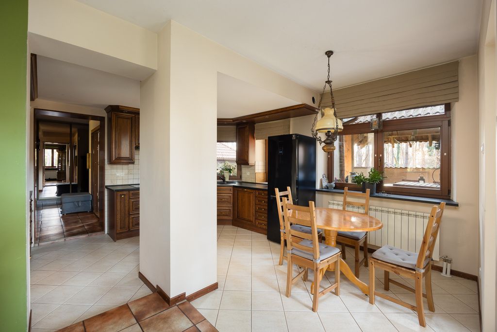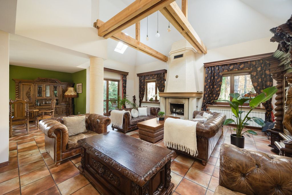 Rezydencja została wykończona z ogromnym poszanowaniem tradycji i ponadczasowej elegancji. Zastosowano wyłącznie szlachetne materiały, dzięki czemu dom urzeka zarówno estetyką, jak i trwałością. Dach pokryty został ceramiczną dachówką, co podkreśla solidny, klasyczny charakter budynku. Wnętrza pełne są naturalnego drewna, ręcznie wykonanych detali, kunsztownych sztukaterii oraz elementów sprowadzanych specjalnie z myślą o tym projekcie. Antyczne wyposażenie tworzy wyjątkowy klimat i nadaje wszystkim pomieszczeniom szlachetnego, niepowtarzalnego stylu. To dom stworzony dla koneserów pięknych przedmiotów i dopracowanych wnętrz, dla osób, które cenią wartość historii i tradycji bardziej niż chwilowe trendy. Każdy element został przemyślany z myślą o komforcie i reprezentacyjności, co daje efekt harmonii i elegancji, której nie da się podrobić.