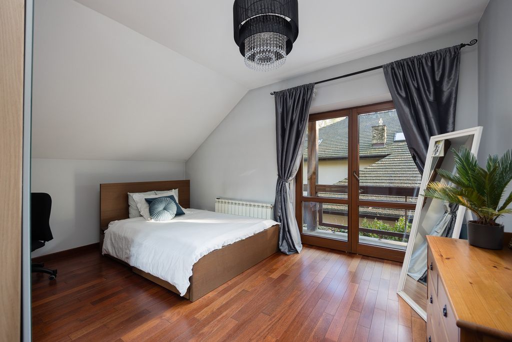 Lokalizacja tej nieruchomości to jedna z największych jej zalet. Dom znajduje się w najbardziej prestiżowej i spokojnej części Legionowa, w otoczeniu wyłącznie zadbanych willi i prywatnych ogrodów. To okolica wolna od bloków i gęstej zabudowy, dzięki czemu mieszkańcy mogą liczyć na pełną prywatność i ciszę. W najbliższym otoczeniu rozciągają się tereny zielone oraz las, co pozwala codziennie cieszyć się naturą, świeżym powietrzem i kameralną atmosferą. Jednocześnie w zasięgu krótkiego spaceru znajdują się szkoły, przedszkola, sklepy, punkty usługowe oraz opieka medyczna, co sprawia, że codzienne funkcjonowanie jest wygodne i bezproblemowe. Kilka minut do stacji PKP Legionowo, co zapewnia szybki dojazd samochodem do Warszawy. Pozwala łączyć spokojne życie w prestiżowej, zielonej okolicy z możliwościami zawodowymi, rozrywkowymi i kulturowymi stolicy.