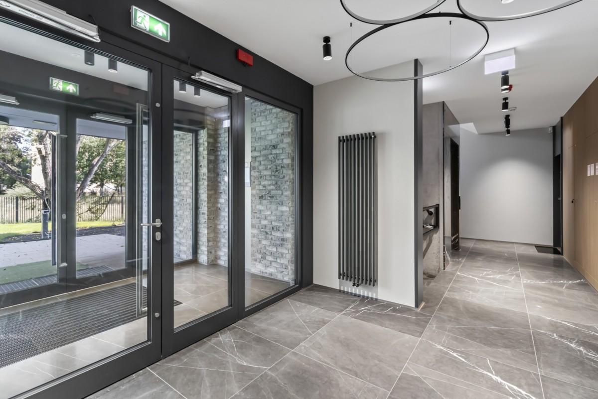 Ogrzewanie podłogowe i kanałowe. Każdy apartament przygotowany jest pod instalację inteligentnego domu (Knx). Klimatyzacja umieszczona w przestrzeni sufitowej. Trzyszybowe okna o podwyższonych parametrach akustycznych z filtrem antysmogowym i antyalergicznym. Drzwi antywłamaniowe. Wysokie sufity (2.84 m). Czujniki dymu w każdym pomieszczeniu.