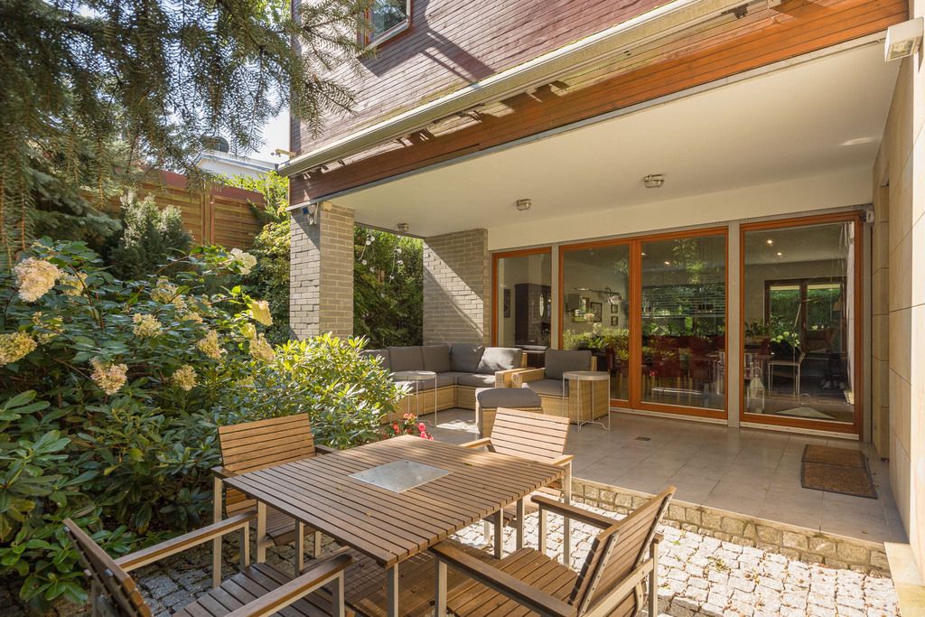 Ekskluzywny dom z dwoma tarasami otoczony zielenią