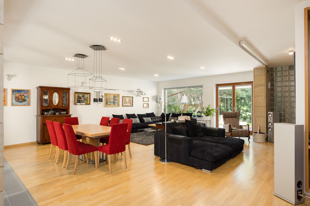 The interior was designed with maximum comfort and intuitive functionality in mind. Each room impresses with its spaciousness and abundant natural light, achieved through large-format glazing that creates a fluid connection between the home and its garden. The technical condition is exemplary, with meticulous maintenance carried out regularly. Ceiling heights of 270 to 280 cm enhance the overall sense of openness.