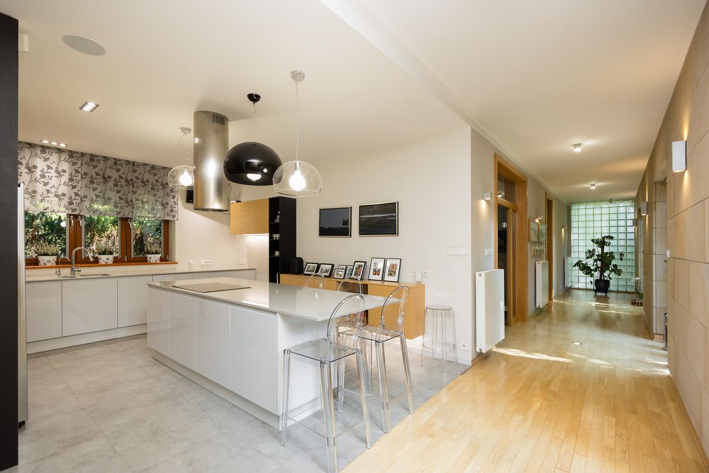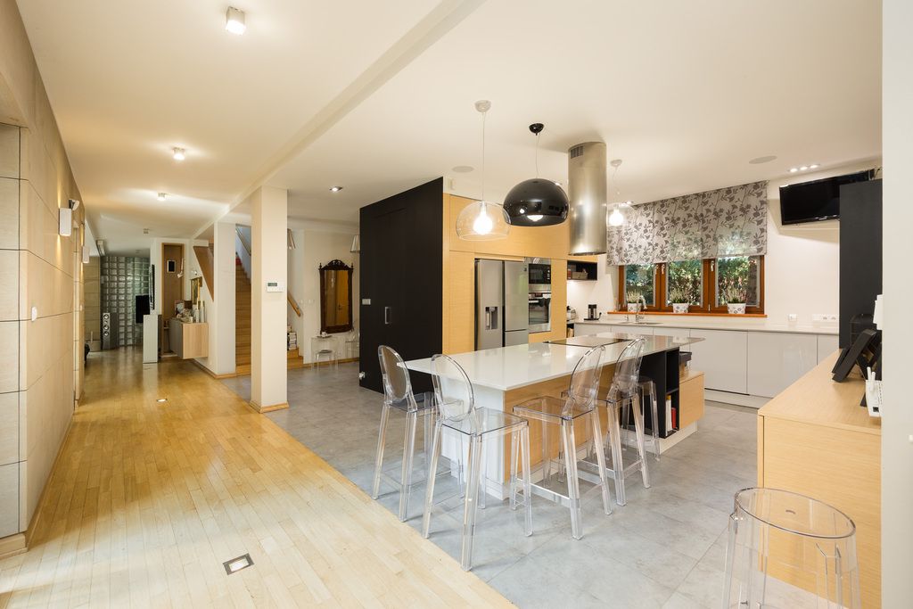Wysmakowaną kuchnię z dużą wyspą w centralnym jej punkcie.