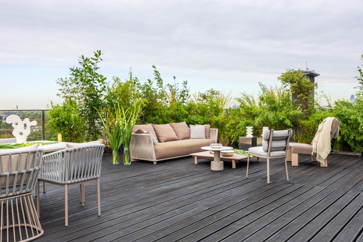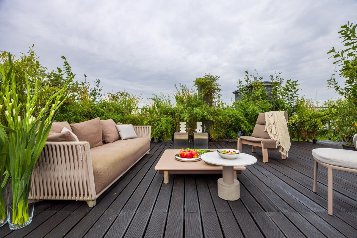 Eleganckie, przeszklone schody prowadzą na spektakularny taras na dachu. To idealne miejsce na relaks, ogród, strefę fitness lub miejsce do spotkania w gronie najbliższych.