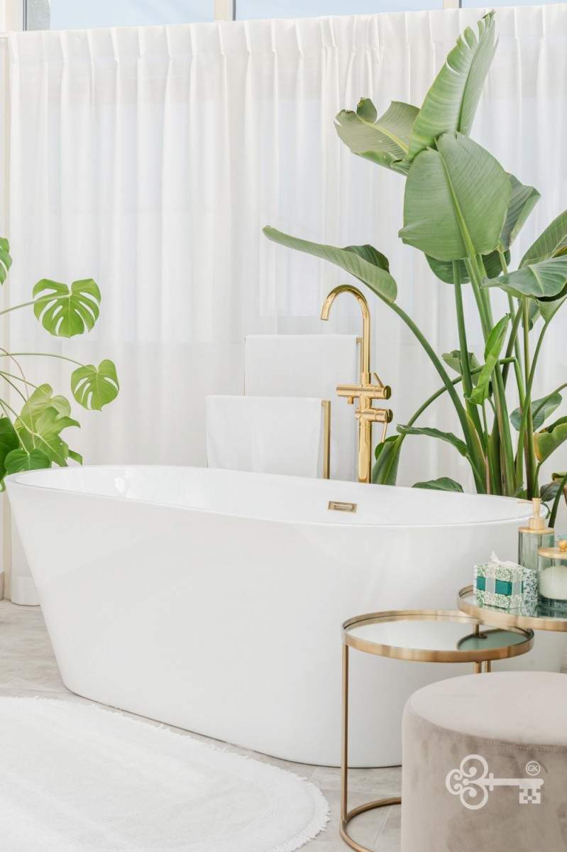* Sypialnia master z unikalną wanną w oranżerii – luksusowe miejsce relaksu.