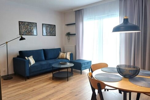 Mieszkanie ma nowoczesne wykończenie wnętrz o podwyższonym standardzie oraz posiada dwustronny układ stron świata.