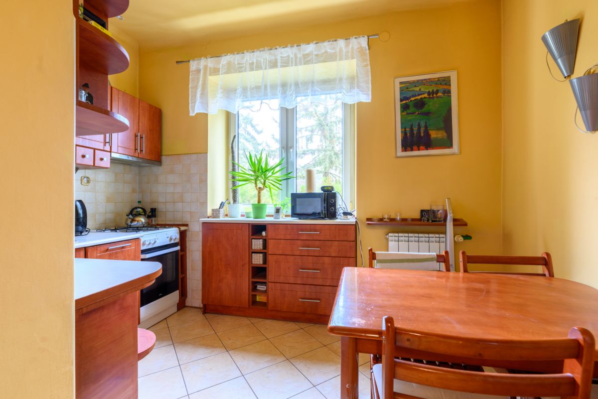 Mieszkanie znajduje się w dwupiętrowym budynku z lat 50., który przeszedł generalny remont oraz termomodernizację. Klatki schodowe są zadbane, a wejście zabezpieczone domofonem. Budynek nie posiada windy, co jest typowe dla kameralnych obiektów tego typu.