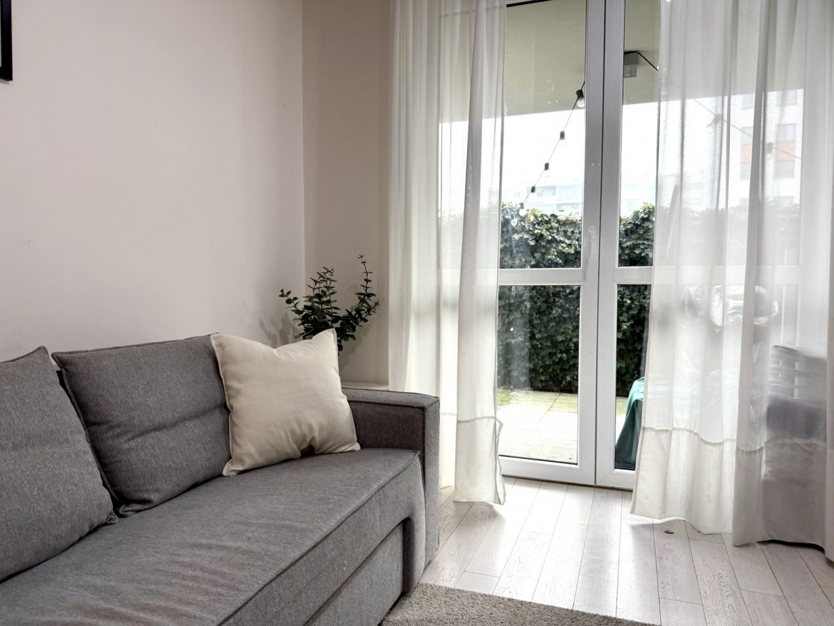 Jej naturalnym przedłużeniem jest prywatny ogródek o powierzchni ok. 30 m² — idealny na poranną kawę w słońcu, letnie śniadania, spotkania z przyjaciółmi przy grillu czy ciche wieczory na świeżym powietrzu.