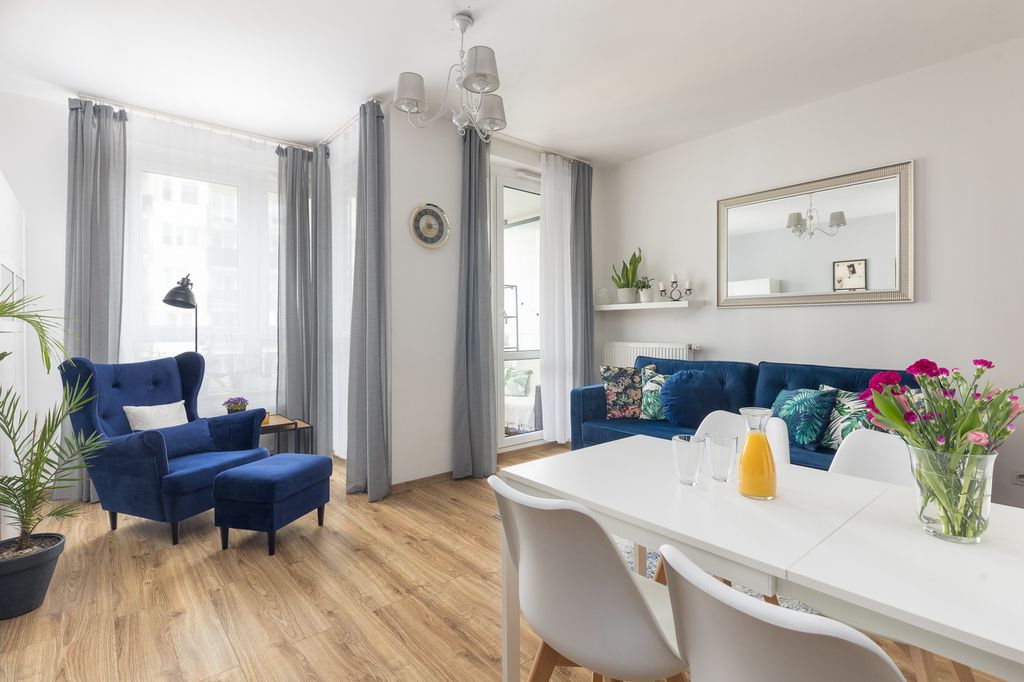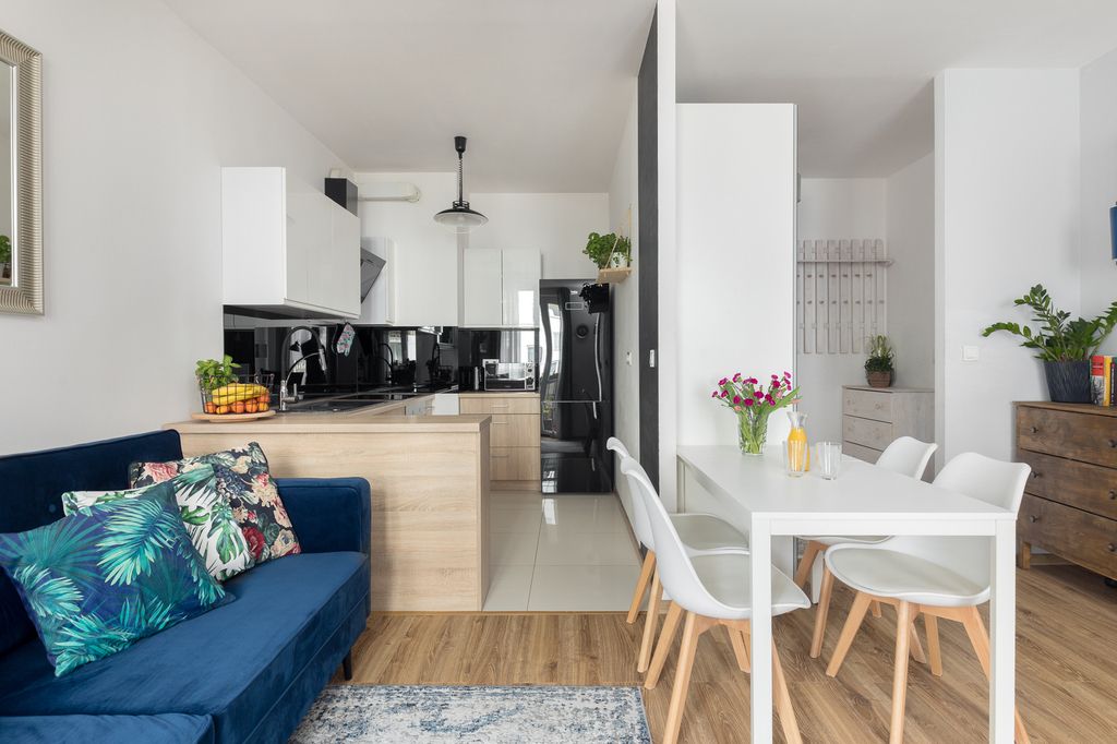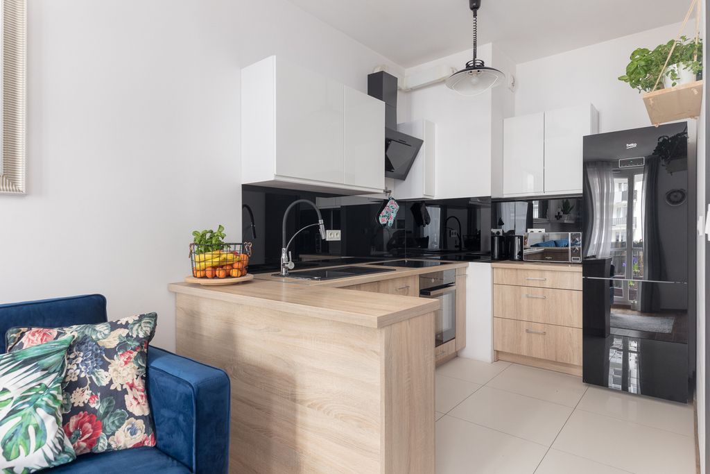 Oferujemy do sprzedaży nowoczesną kawalerkę na warszawskim Mokotowie położoną na pierwszym piętrze sześciopiętrowego budynku z windą z 2016 roku.