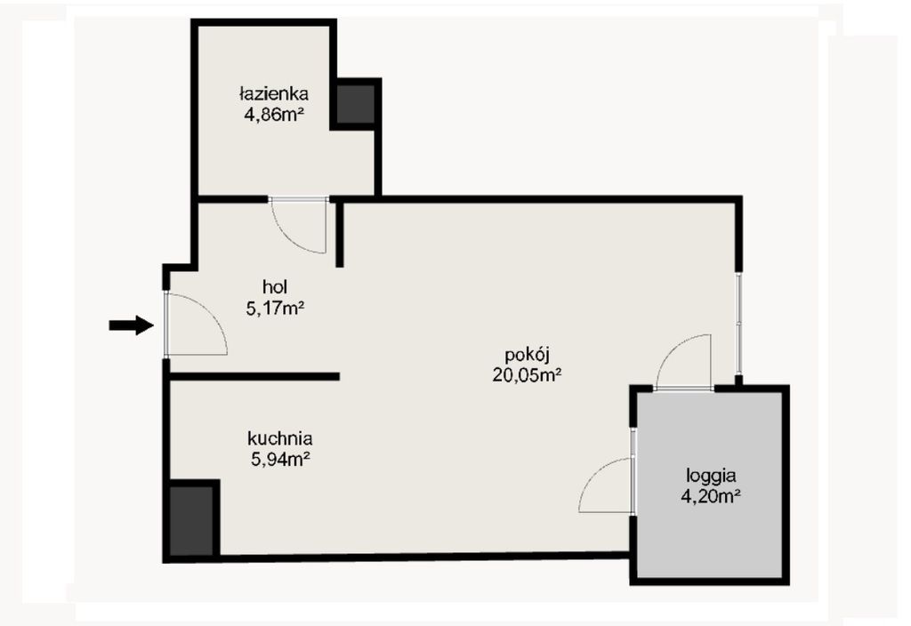 – pokój (20,05m2) z wyjściem na loggię (4,20m2),