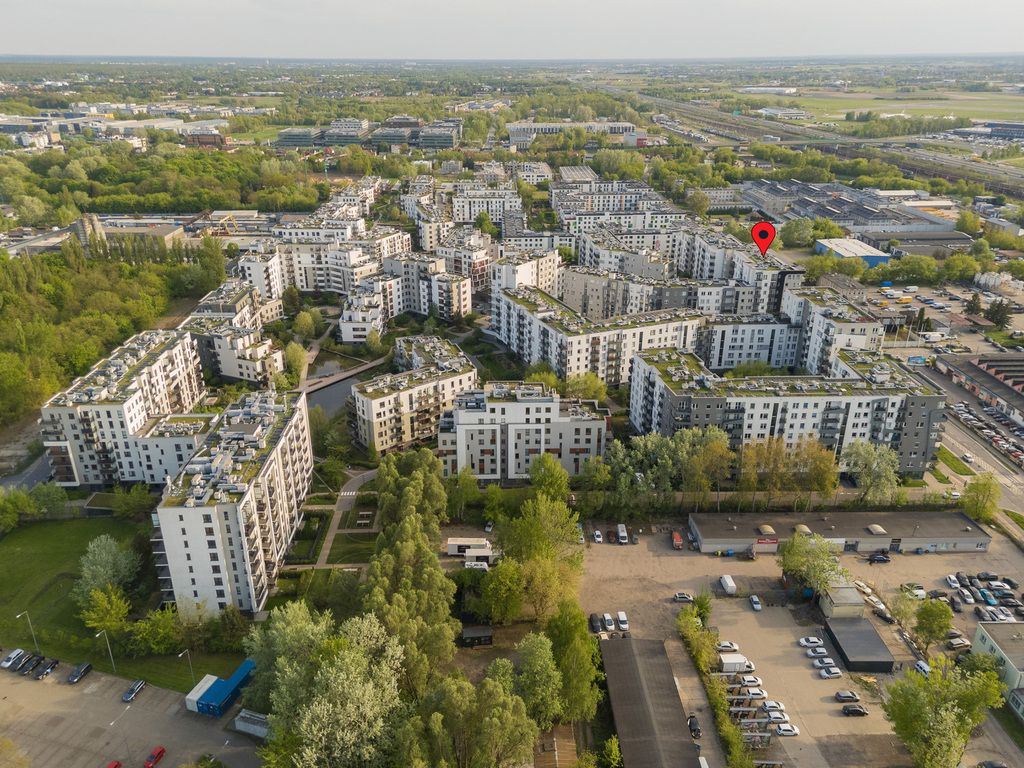 Nieruchomość położona na zamkniętym, monitorowanym i chronionym osiedlu. Jest częścią inwestycji Central Park zrealizowanej przez firmę Marvipol Development. Mieszkanie w bardzo dobrym stanie technicznym, praktycznie gotowe do zamieszkania. Dużym atutem jest wysokość pomieszczeń (około 280 cm) oraz okna od strony patio (nie od ulicy). Na podłogach panele oraz gres. Woda i ogrzewanie z sieci miejskiej. Okna PCV skierowane na wschód. Nieruchomością zarządza wspólnota, czynsz wynosi ok. 630 zł.
