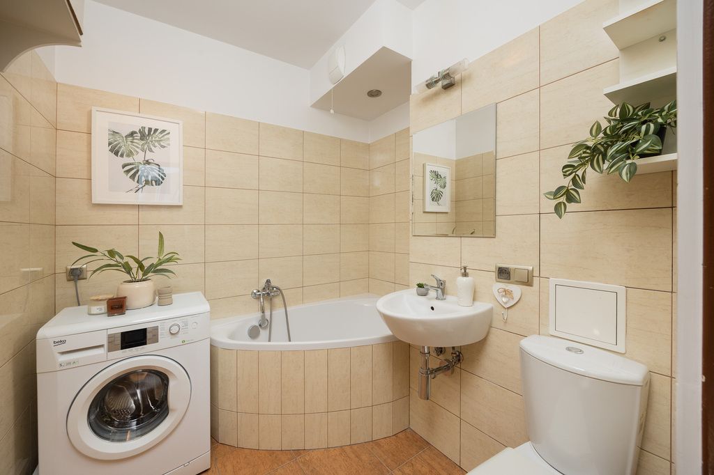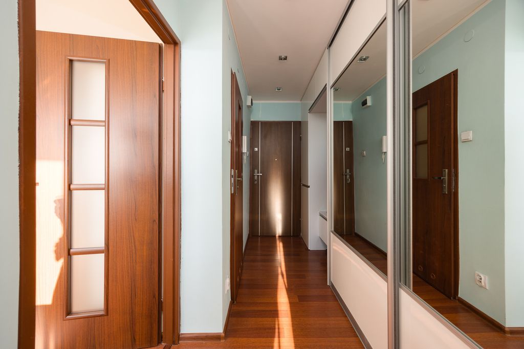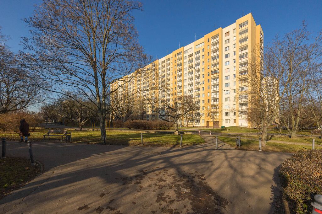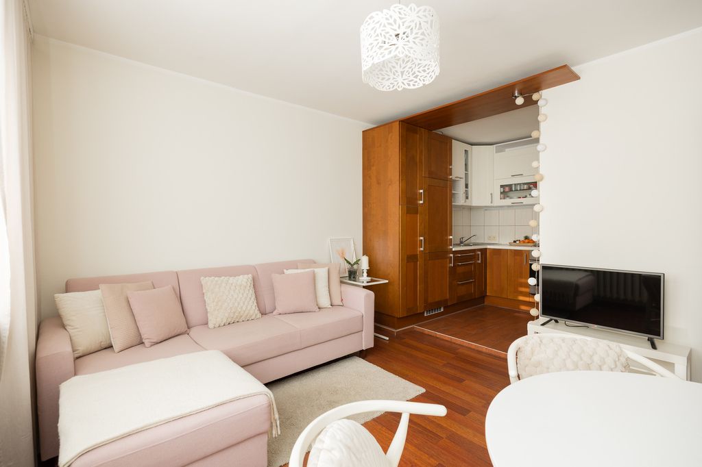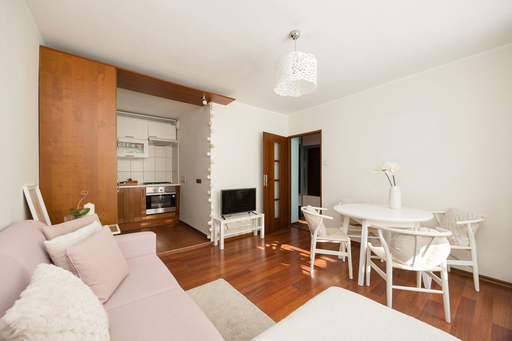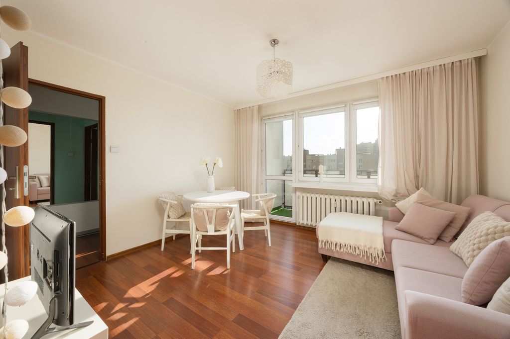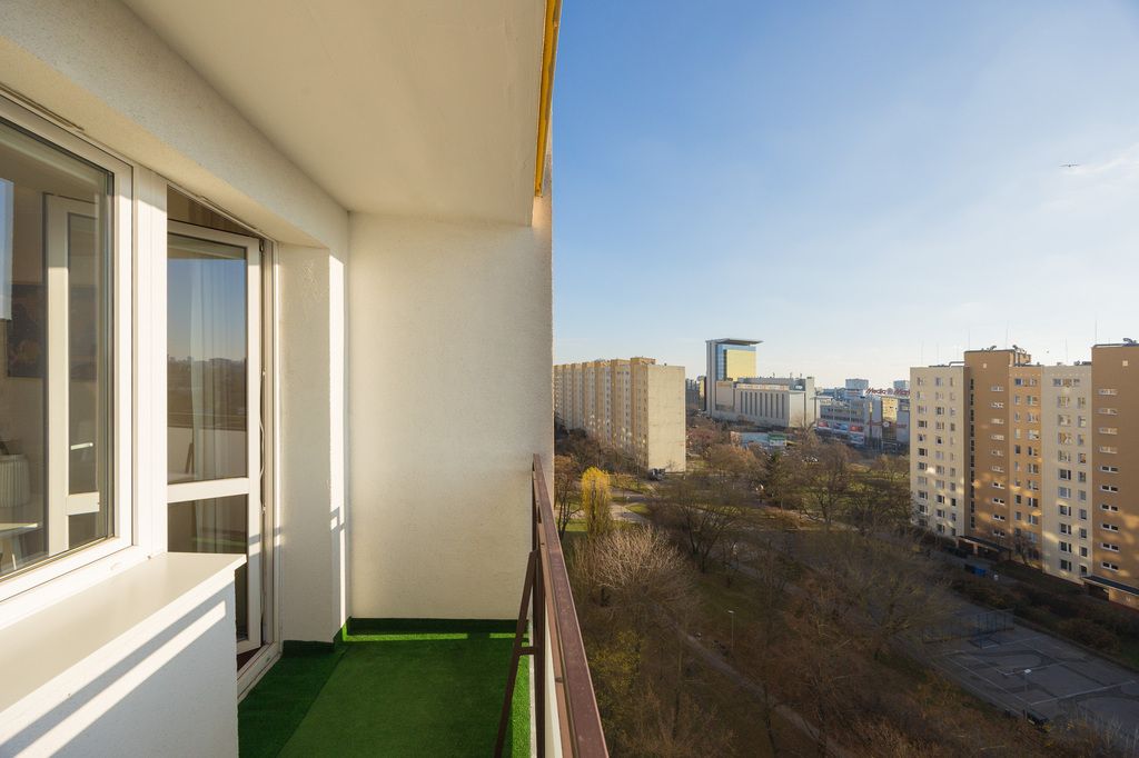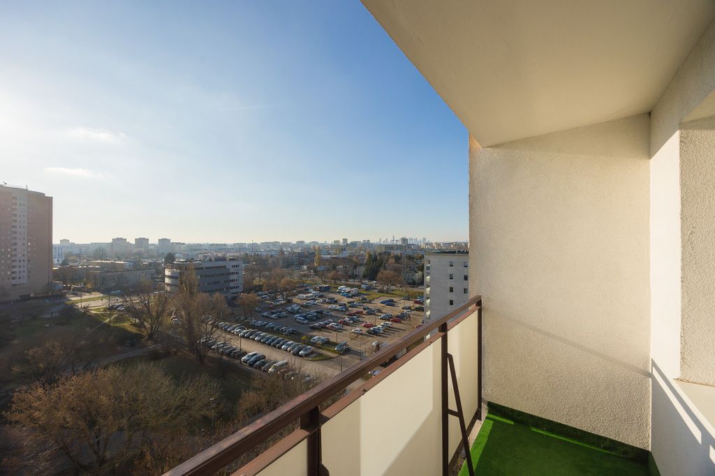 Nowoczesne dwupokojowe mieszkanie na warszawskiej Pradze-Południe położone na dziewiątym piętrze dwunastopiętrowego budynku z windą z 1978 roku przy ul. Komorskiej 4.