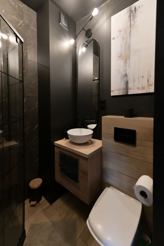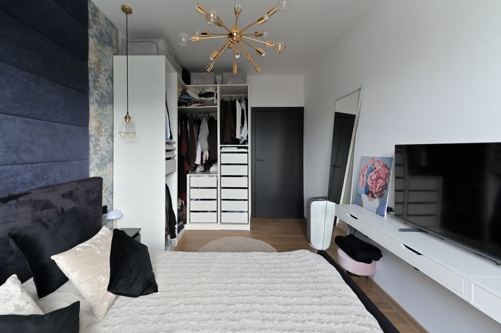 Mieszkanie zostało wykończone z dbałością o każdy detal, w spójnej i eleganckiej kolorystyce. Dzięki wysokiej jakości panelom winylowym na podłogach oraz nowoczesnemu oświetleniu, wnętrze jest przytulne i bardzo estetyczne.
