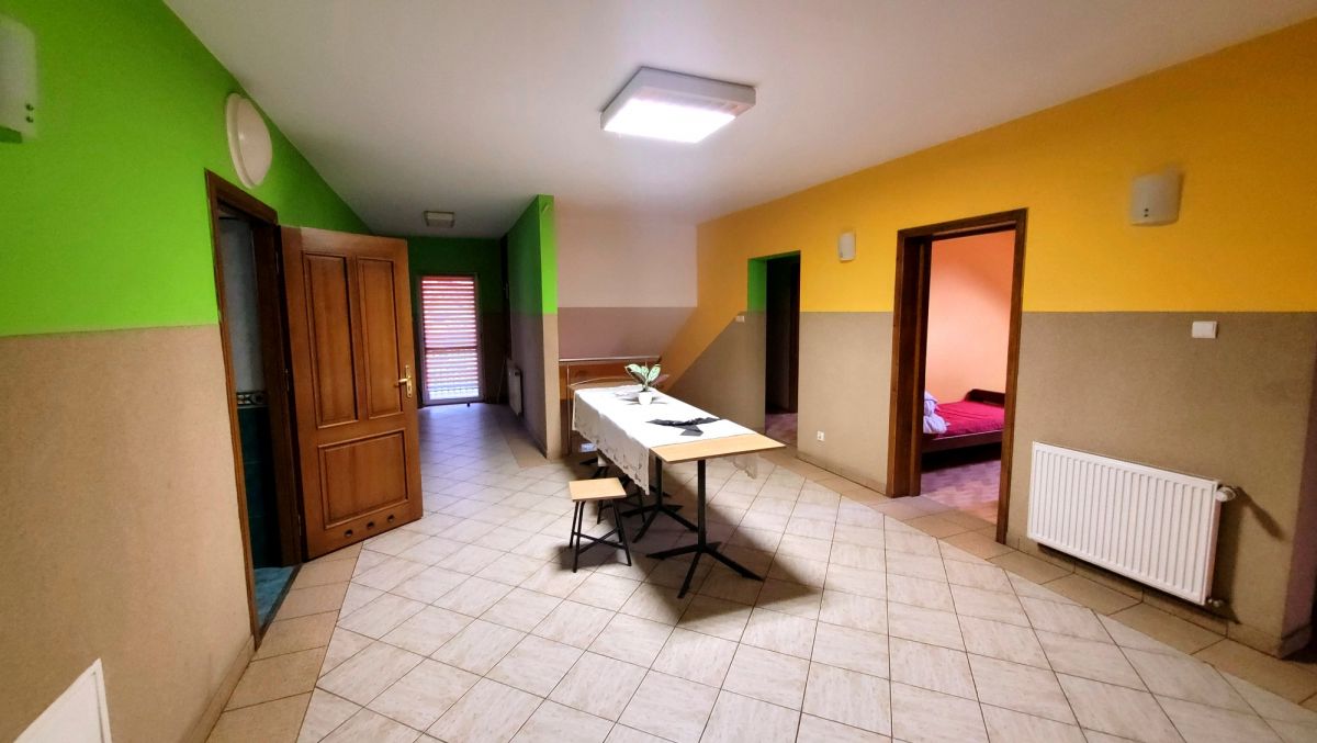 Budynek składa się z parteru i 3 poziomów zagospodarowanych na oddzielne pokoje 2/3 osobowe ( ogółem możliwość zakwaterowania około 50 osób) wraz z częściami wspólnymi, kuchniami, łazienkami . Do nieruchomości doprowadzony jest gaz (ogrzewanie własny piec gazowy), prąd.