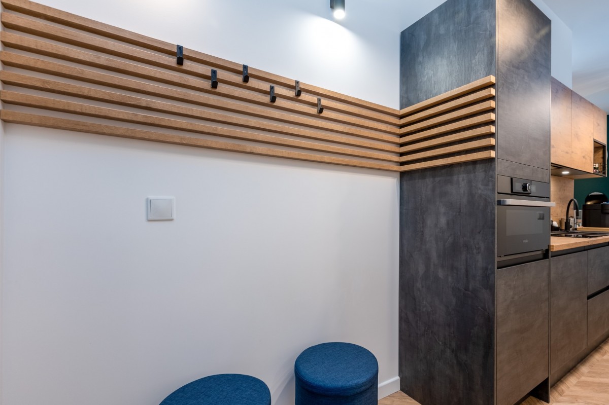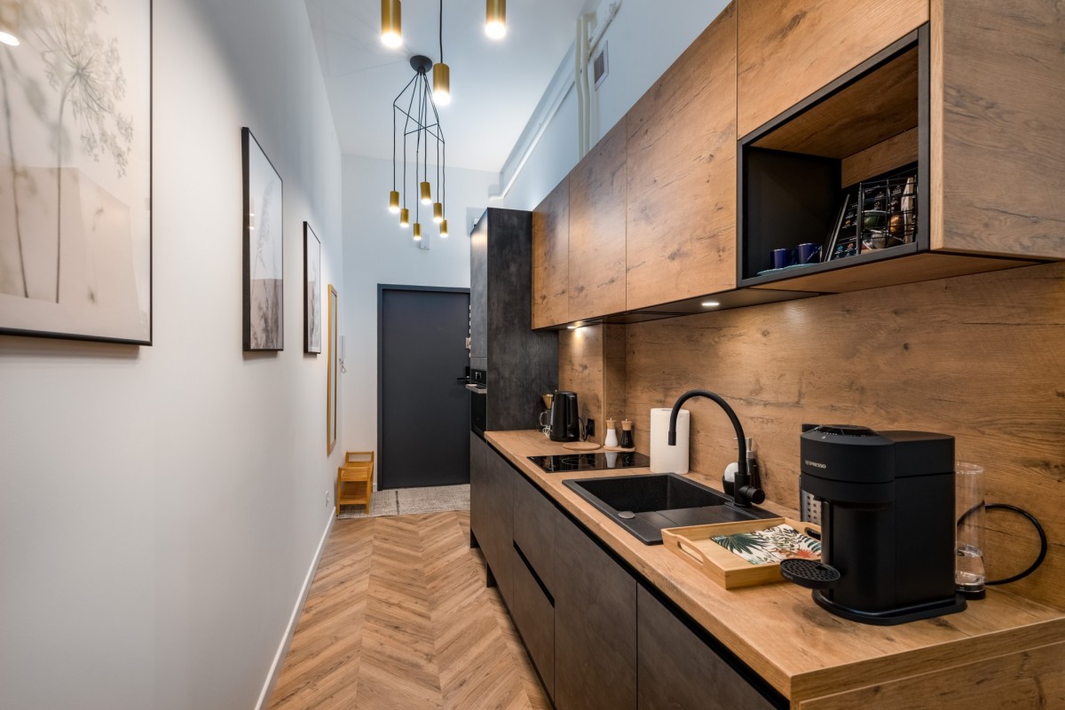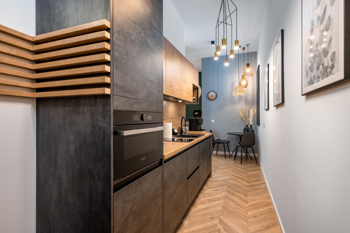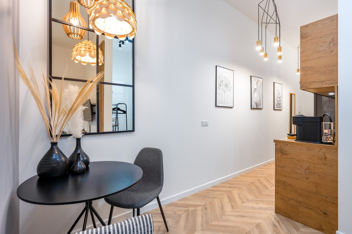 Funkcjonalna i elegancka kawalerka zaprojektowana z myślą o komforcie i maksymalnej rentowności. Wnętrze wyróżnia się wysokiej klasy designem, starannie dobranymi materiałami oraz ponadczasową estetyką.