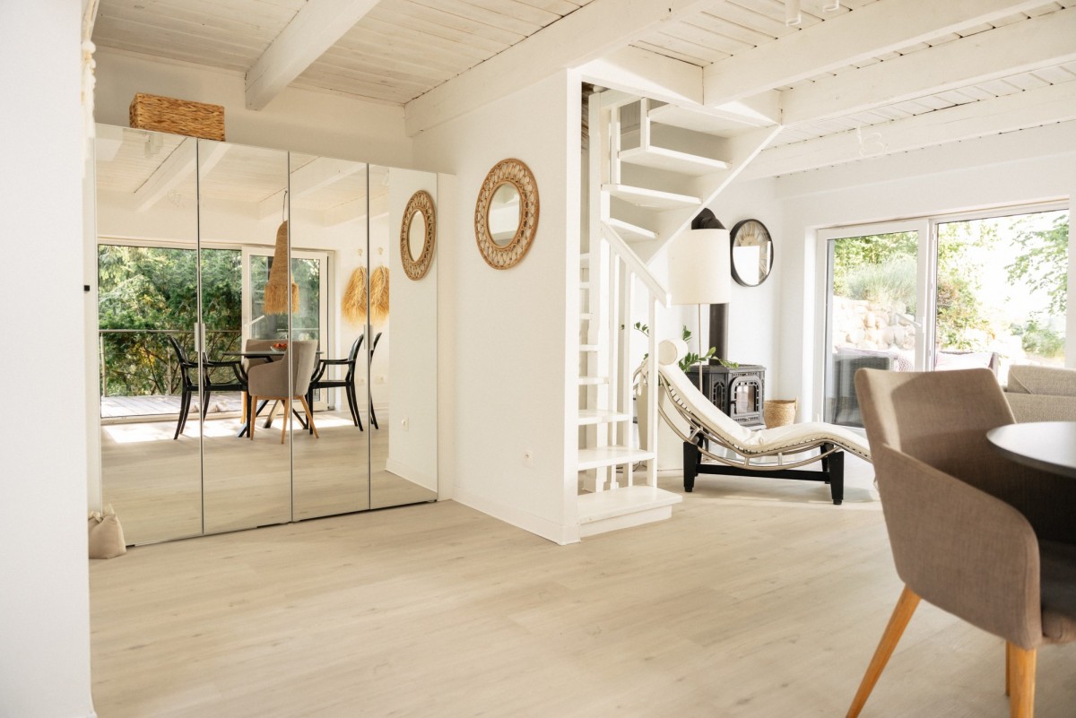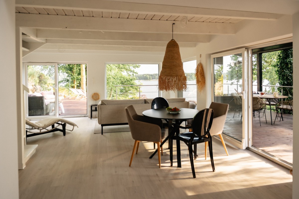 Niewątpliwym atutem jest bezpośrednie zejście do jeziora, zakończone pomostem umożliwiającym cumowanie motorówki, skutera wodnego, kajaka czy deski SUP. To miejsce stworzone do aktywnego wypoczynku przez cały rok – pływania, spacerów wśród sadów i lasów, jazdy konnej czy rowerowej, a zimą morsowania i relaksu przy kominku.