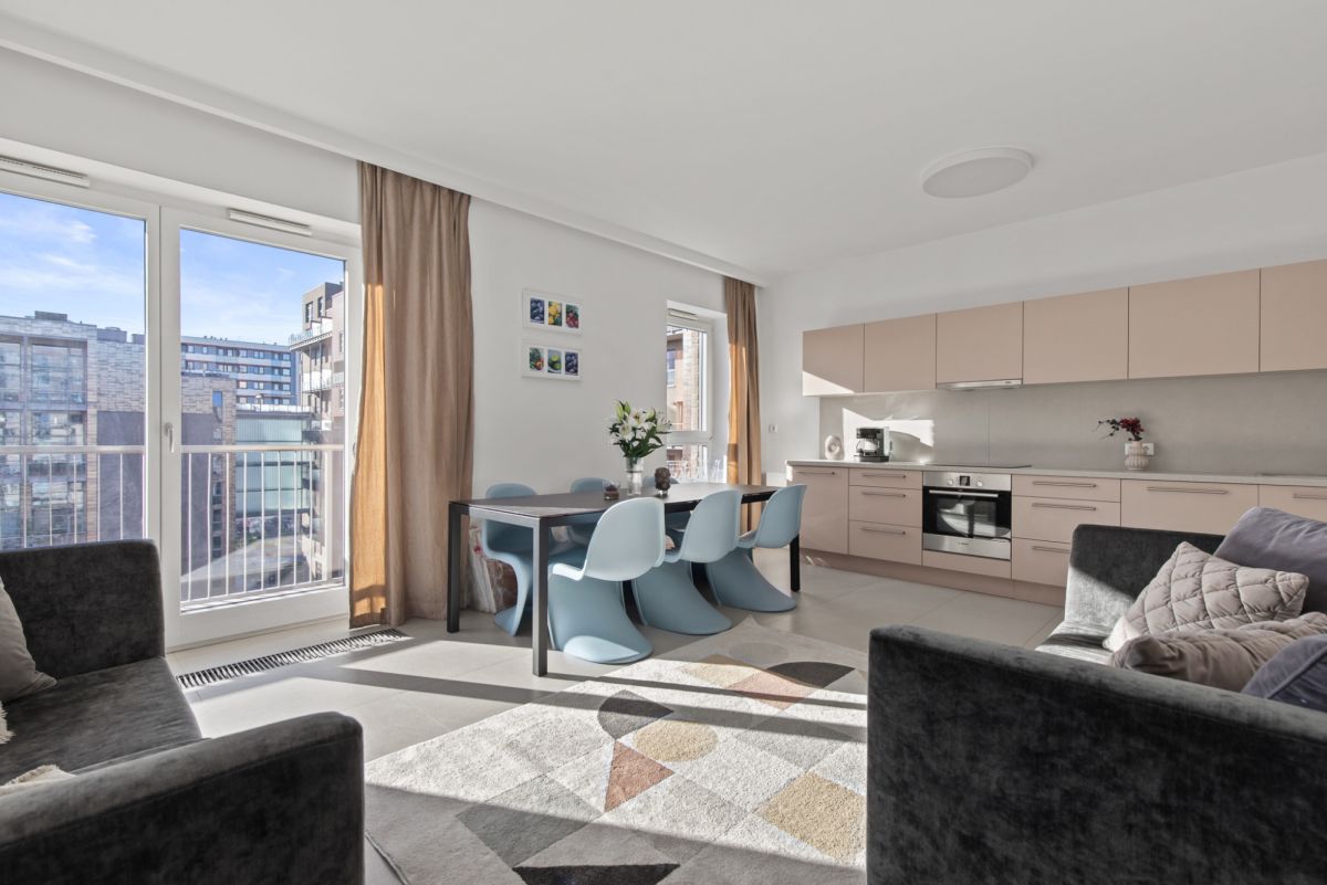 Prestigious Qbik development – a well-known residential complex distinguished by its industrial architecture and large glazing.