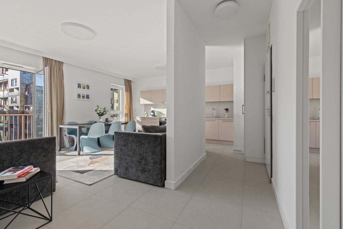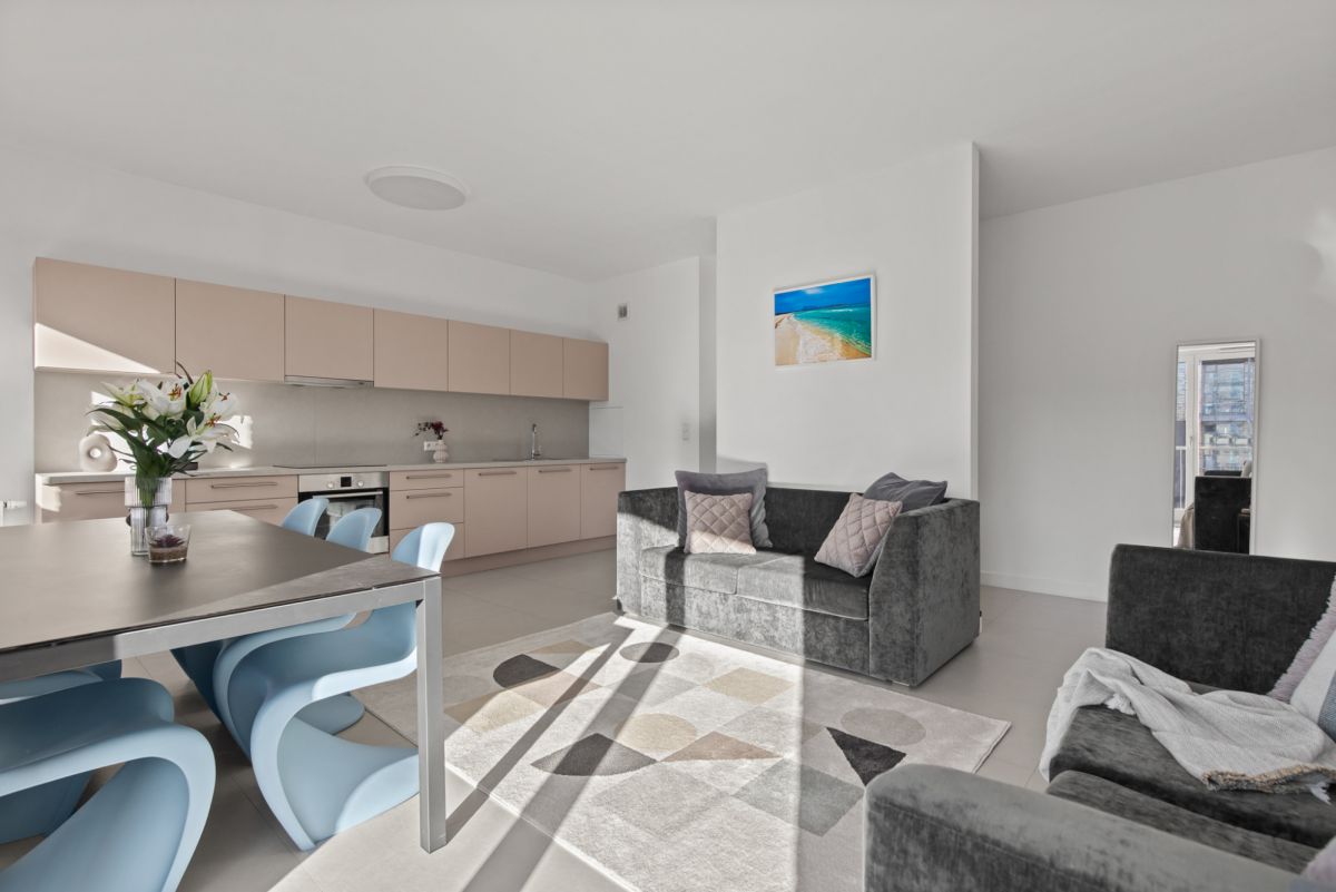 Rozkład mieszkania został bardzo dobrze przemyślany – duże przestrzenie i intuicyjny układ zapewniają codzienny komfort.