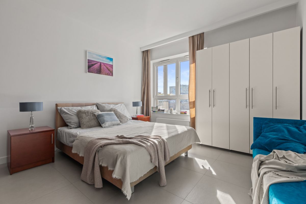 Ustawna sypialnia z miejscem na obszerne szafy i komfortowe łóżko.