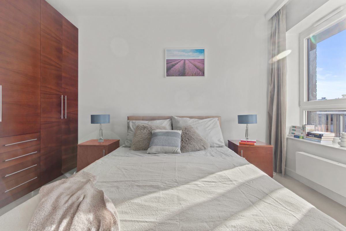 Well-proportioned bedroom with space for large wardrobes and a comfortable bed.