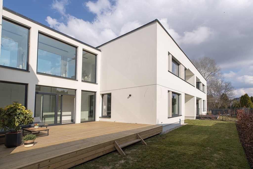 Przy ul. Sytej na wilanowskich Zawadach prezentujemy unikatowy koncept architektoniczny: dwa niezależne domy połączone w jedną, imponującą bryłę.