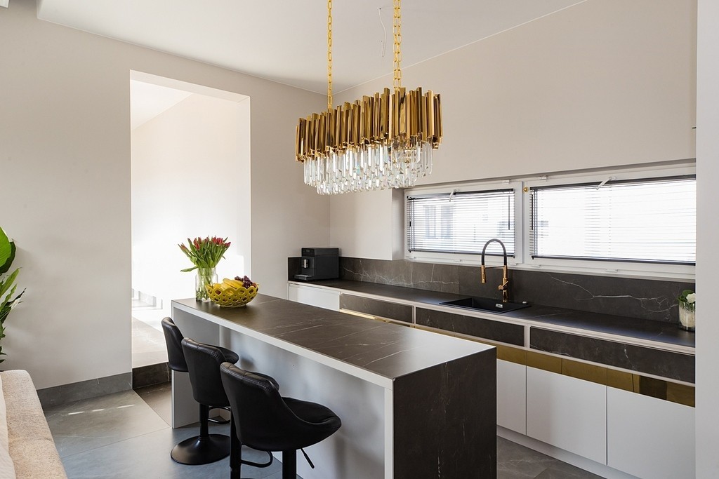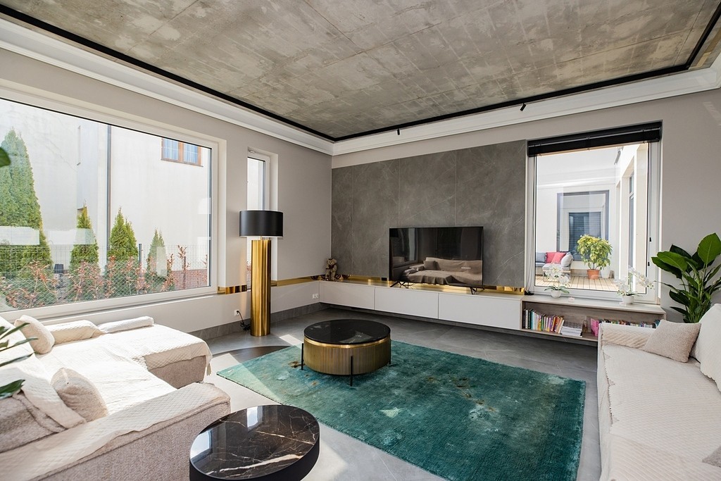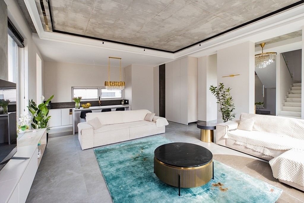 – Wykończona baza: część pomieszczeń jest gotowa do wprowadzania i zachwycają detalami (loftowy beton, złota armatura). Wymagają jedynie doposażenia w meble na wymiar (stolarkę)