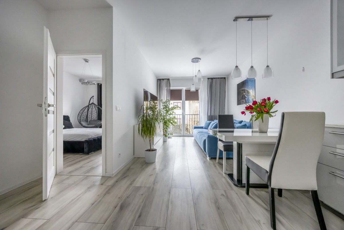 • Przestronny salon połączony z aneksem kuchennym i jadalnią.