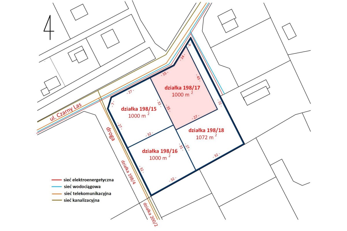 Na sprzedaż działka budowlana nr ewid. 198/17, o powierzchni 1000 m² w Kajetanach, gmina Nadarzyn, położona w pierwszej linii zabudowy, bezpośrednio przy ul. Czarny Las. Teren płaski, nieogrodzony o wymiarach 29 x 32 .