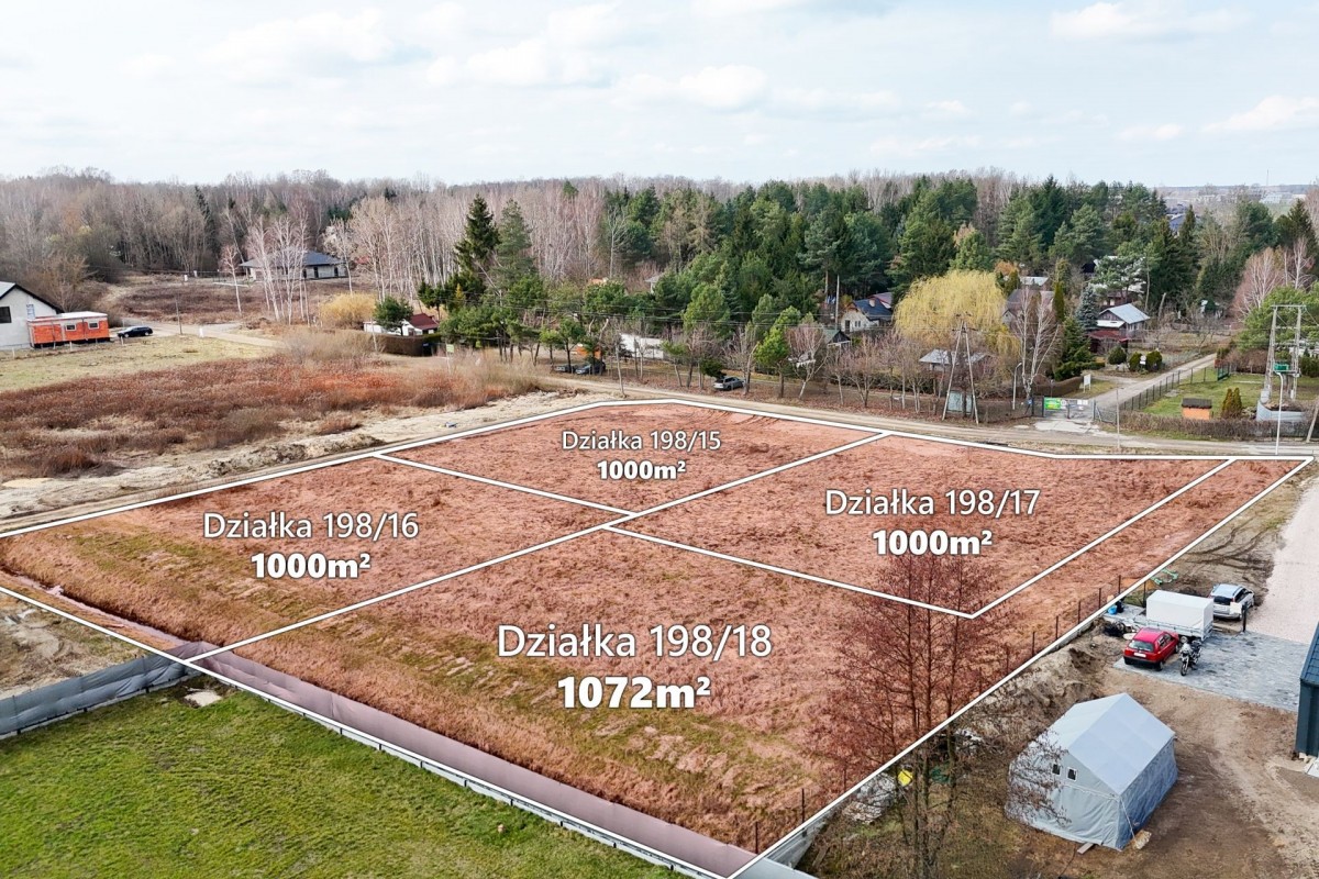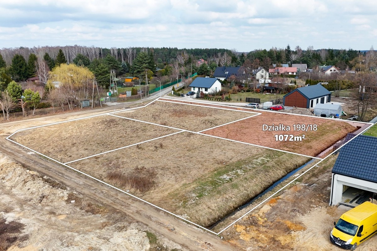 Na sprzedaż działka budowlana nr ewid. 198/18 o powierzchni 1072 m² w Kajetanach, gmina Nadarzyn, położona w drugiej linii zabudowy od ul. Czarny Las, z bezpośrednim dostępem do niej.