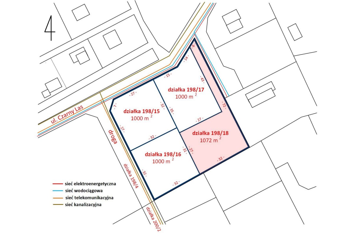 Istnieje możliwość zakupu sąsiadujących działek o podobnej powierzchni i wymiarach, bądź całego terenu 63 x 63 m = 4072m2