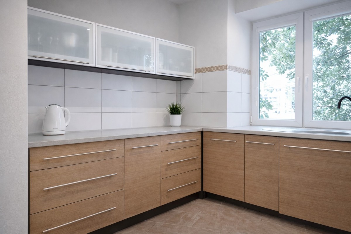 Wnętrze utrzymane w nowoczesnym stylu. Pokoje nie są umeblowane, co daje pełną swobodę aranżacji według własnego gustu. Jednocześnie kuchnia i łazienka są w 100% wyposażone — gotowe do użytkowania od pierwszego dnia. Kuchnia posiada sprzęt AGD: lodówkę, zmywarkę, piekarnik oraz pralkę z funkcją suszenia.