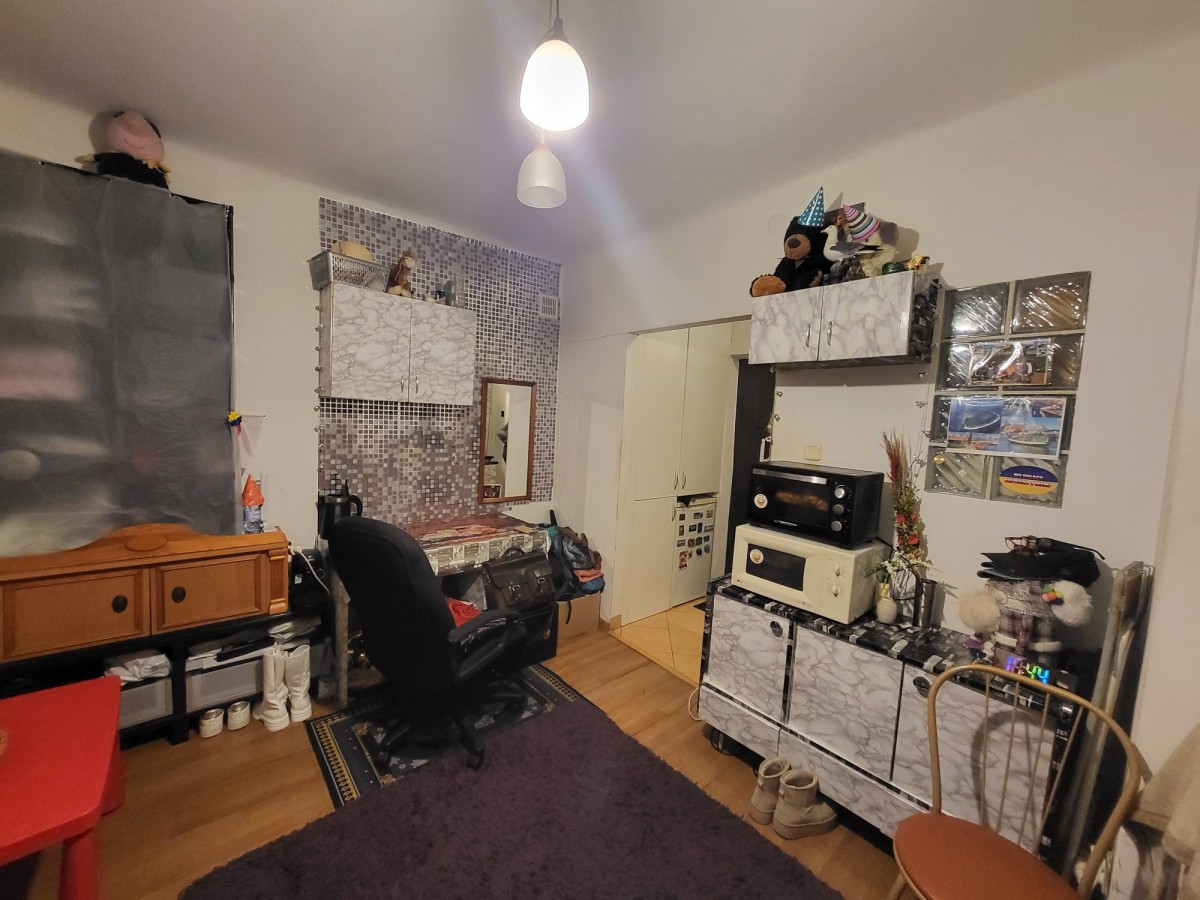 Pokój około 13m3, 5m to łazienka, kuchnia i przedpokój.