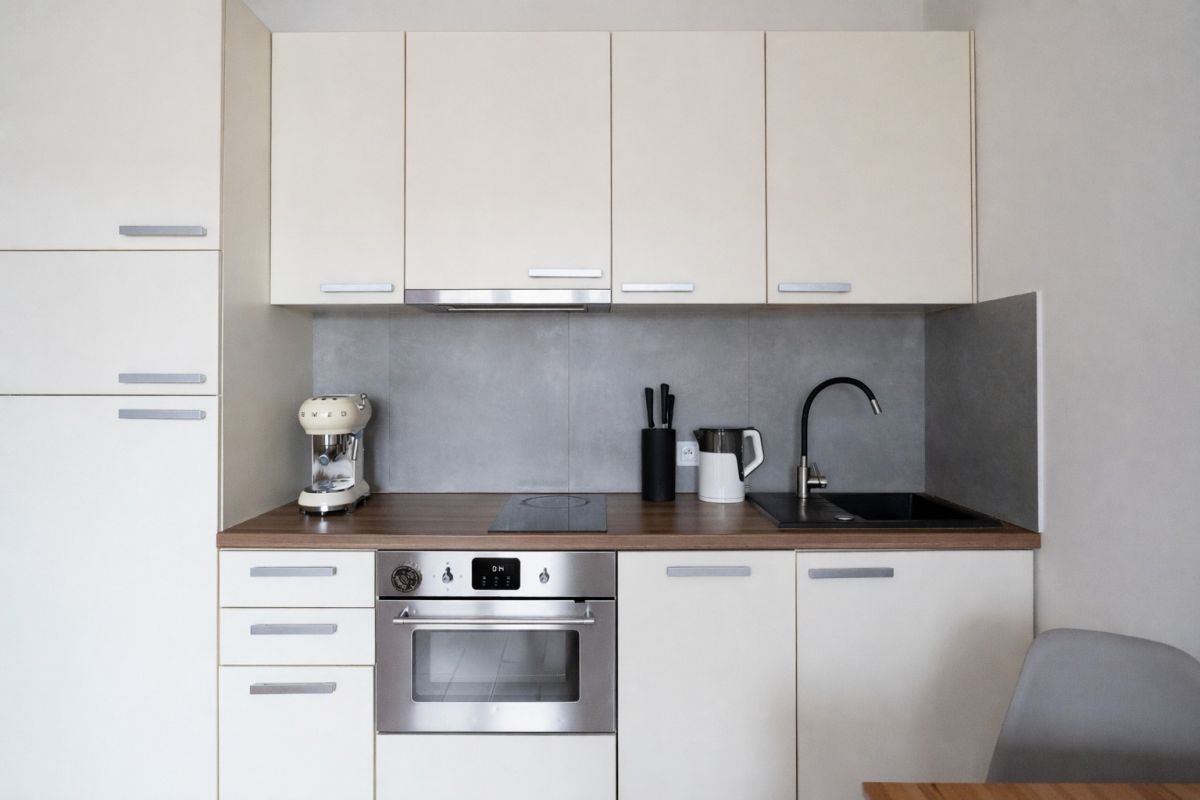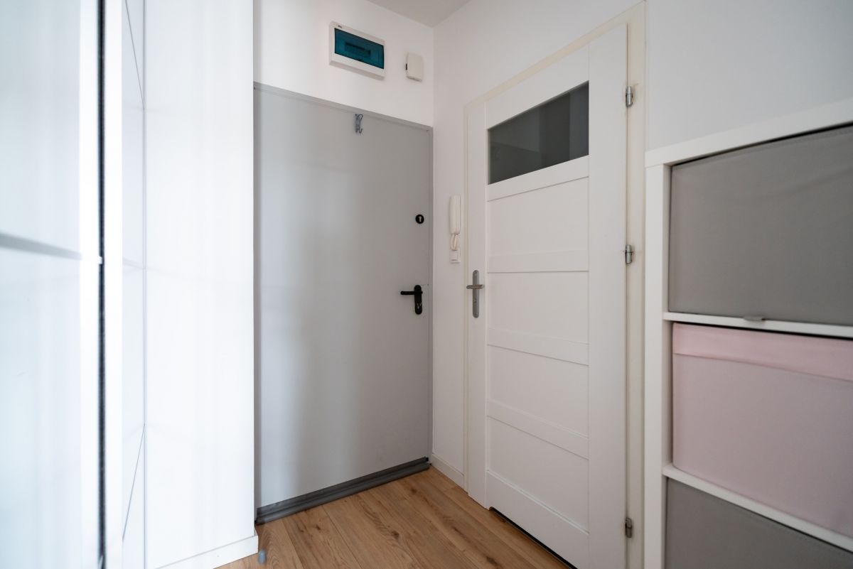 Mieszkanie zaprojektowano z myślą o funkcjonalności — składa się z pokoju z aneksem kuchennym oraz łazienki. Kuchnia jest w pełni wyposażona, a w przedpokoju znajduje się pojemna szafa. Układ mieszkania jest prosty i wygodny w codziennym użytkowaniu.