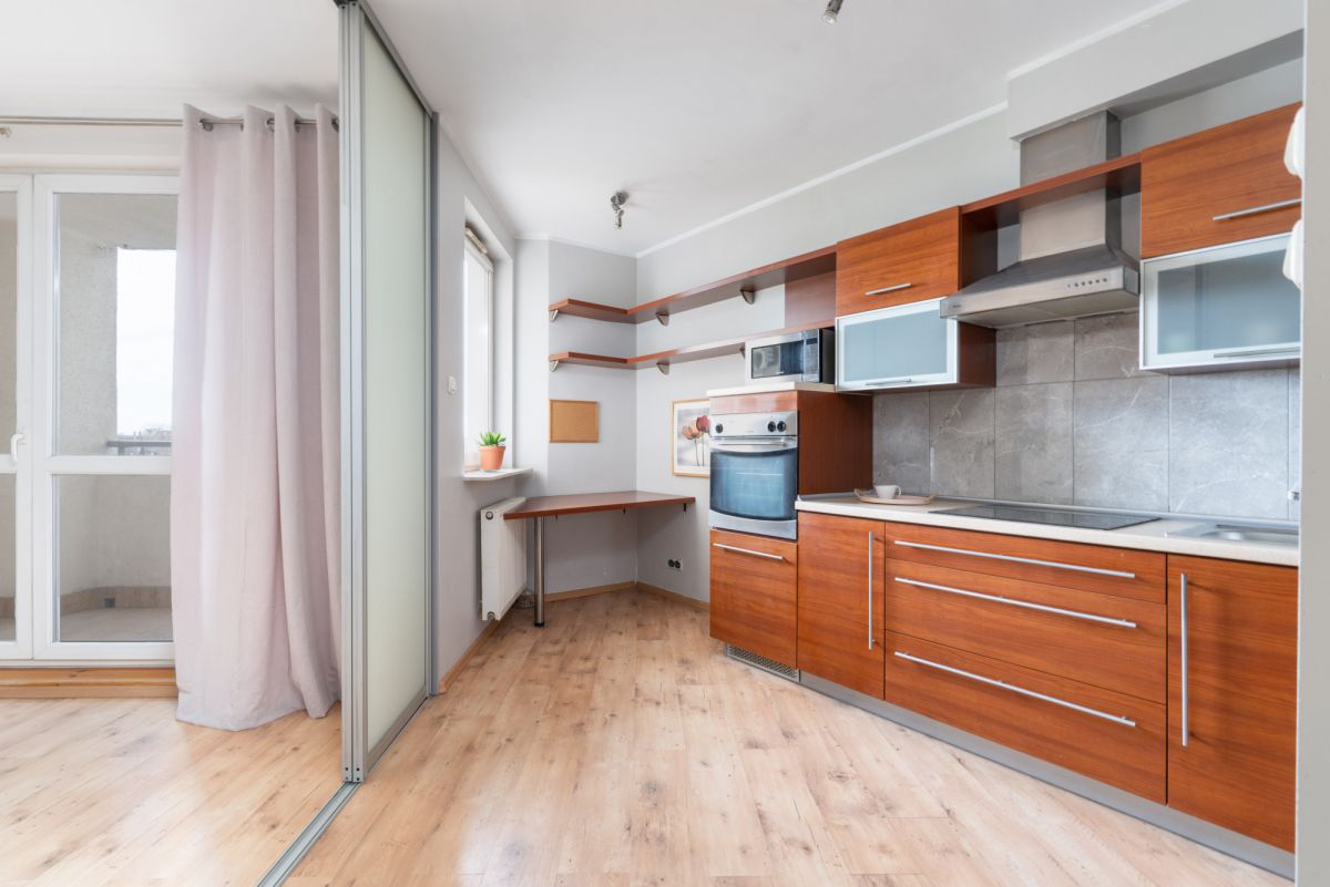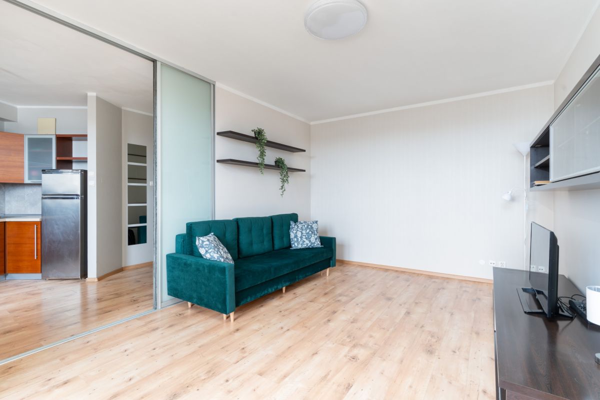 Ta jasna kawalerka na 7 piętrze to idealna propozycja dla singla, pary lub inwestora.