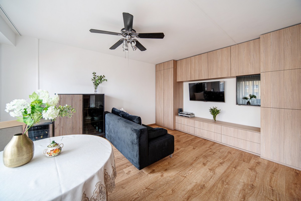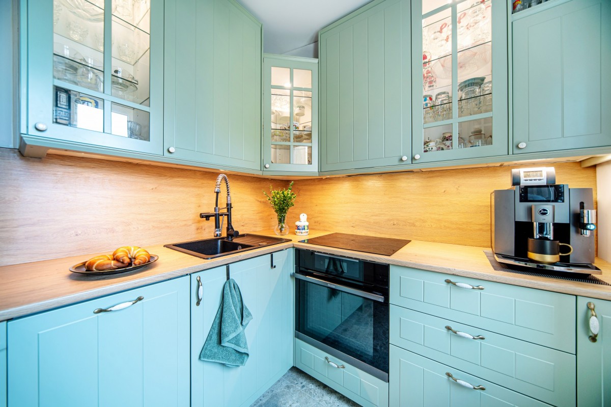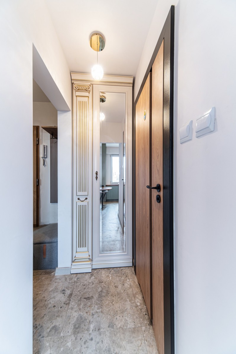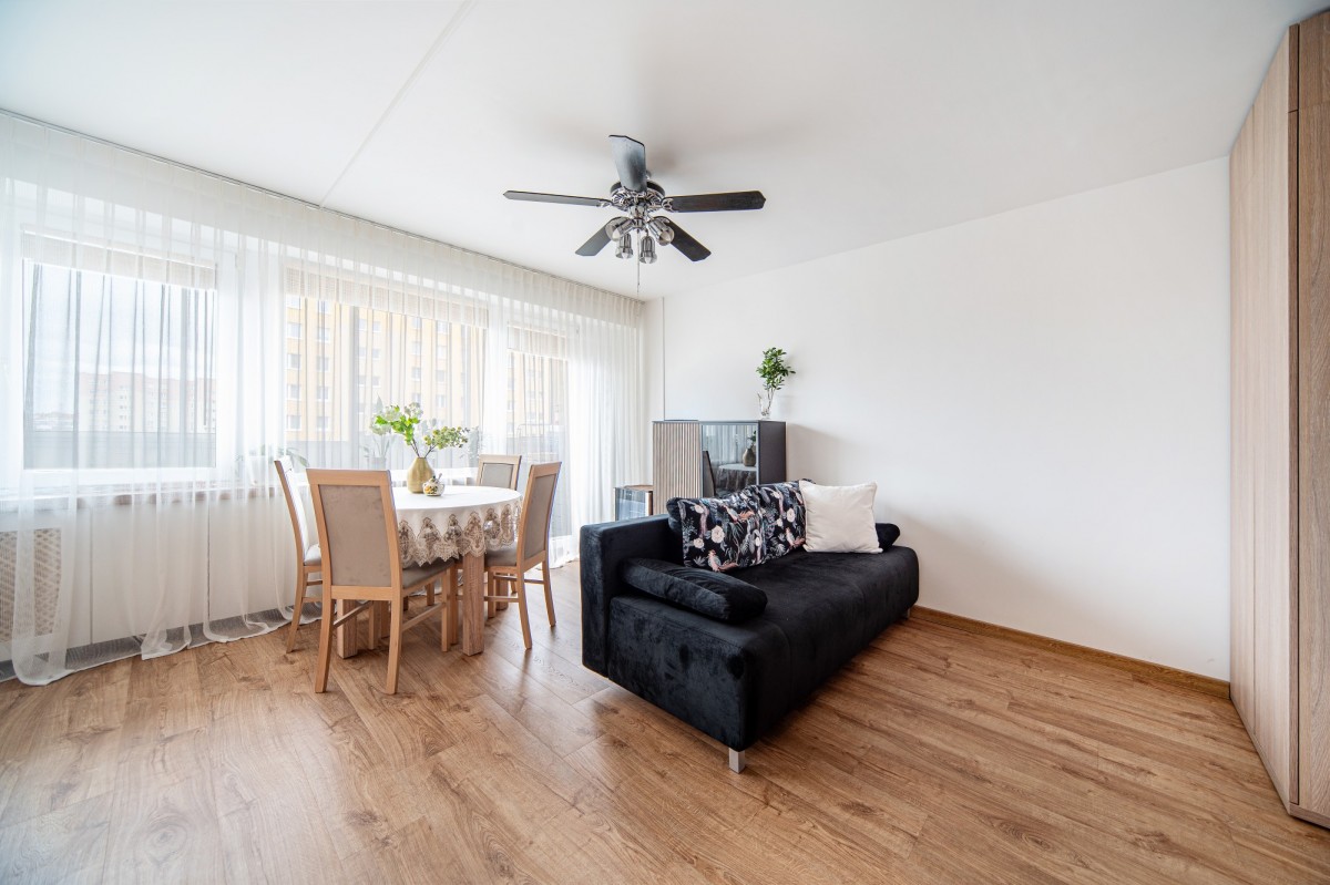 Przemyślany układ pomieszczeń obejmuje przestronny, jasny salon o powierzchni 21,7 m², który stanowi serce mieszkania, oraz oddzielną, elegancką kuchnię (6 m²) wyposażoną w wysokiej jakości meble wykonane na wymiar. Całość uzupełnia funkcjonalna łazienka oraz komfortowy przedpokój.