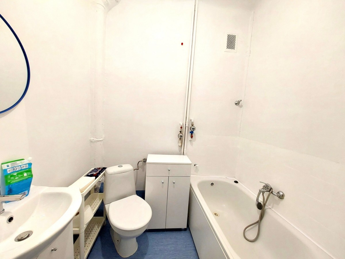 Łazienka 6m2 – wanna, umywalka, szafka.
