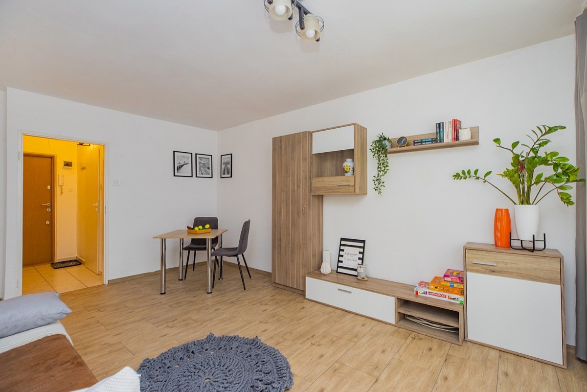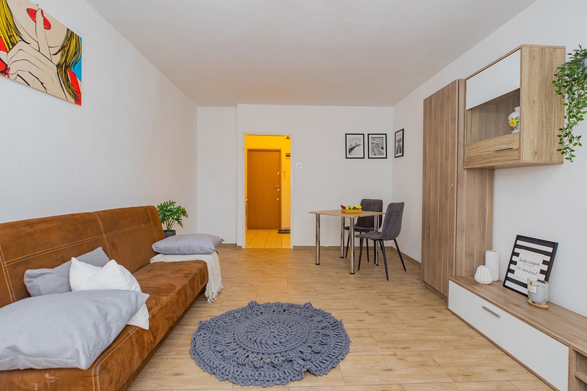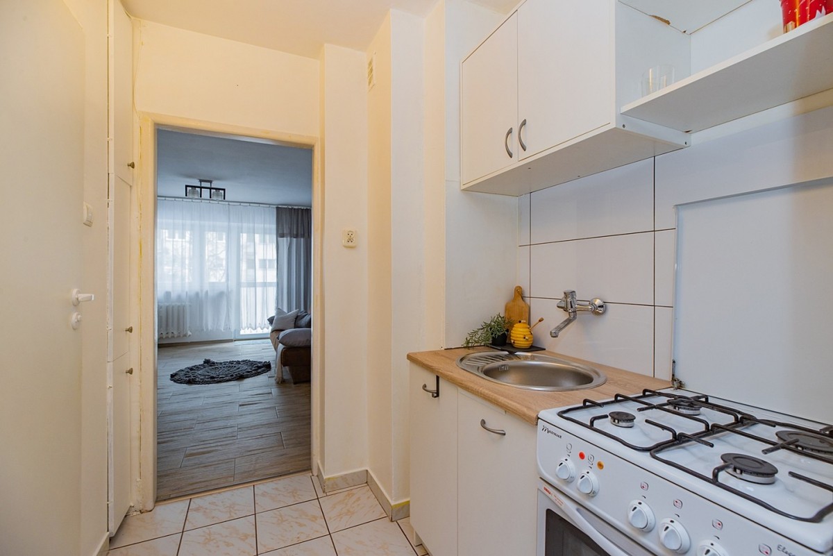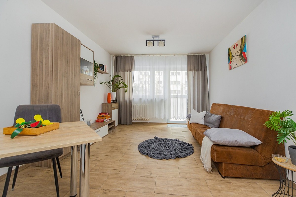 Lokal składa się z jasnego pokoju z balkonem od strony wschodniej, aneksu kuchennego oraz łazienki. Mieszkanie jest ciepłe, słoneczne i gotowe do zamieszkania – idealne dla studenta, singla lub jako pierwsze własne „M”.