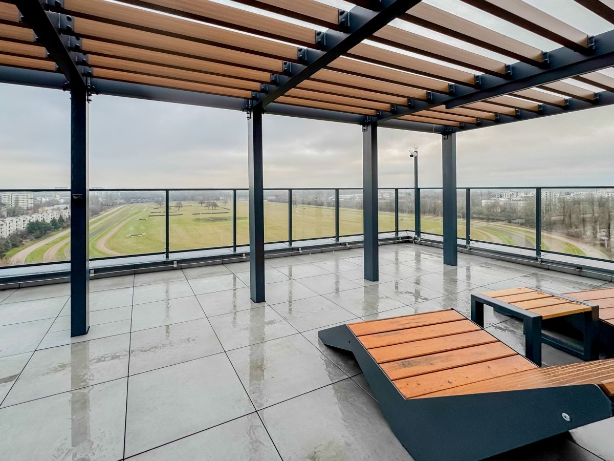Mieszkanie wyróżnia się pięknym, panoramicznym widokiem na treningowy tor wyścigów konnych Służewiec, który roztacza się z przestronnej loggii skierowanej na wschód/południe. Duże drewniane okna zapewniają idealne doświetlenie wnętrza, a otwarta przestrzeń pozwala na komfortowe wydzielenie strefy sypialnianej.