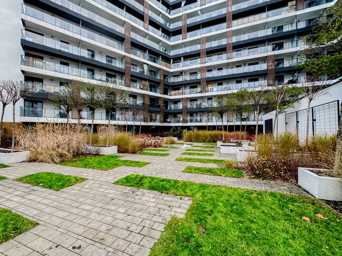 Na terenie osiedla zadbano o najwyższy komfort i poczucie bezpieczeństwa mieszkańców. Eleganckie, reprezentacyjne lobby z całodobową recepcją wita już od progu, a monitoring oraz kontrola dostępu zapewniają spokojne funkcjonowanie na co dzień. Całość znajduje się na terenie zamkniętym, z pięknie zaprojektowaną zielenią, wśród której wyróżnia się prywatny park kieszonkowy — idealne miejsce na chwilę relaksu bez wychodzenia poza osiedle.