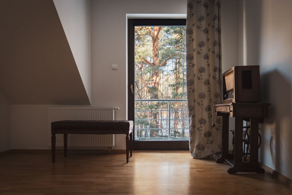 Ergonomiczny i ekonomiczny dom. Mazowiecki Park Krajobrazowy za oknem.
