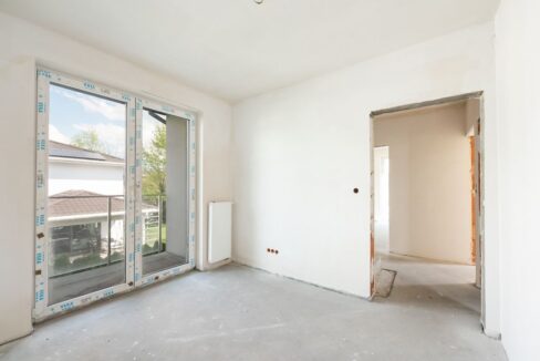 – Salon z aneksem kuchennym, kształtny ustawny z wyjściem na dużą loggie