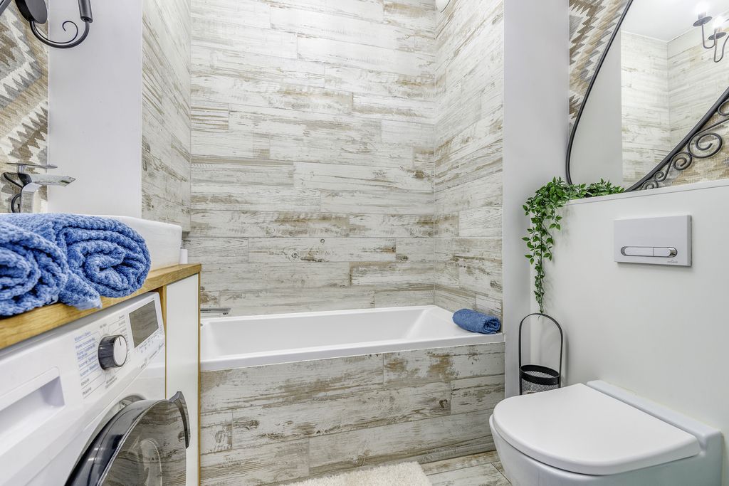 – łazienka z wanną połączona z toaletą