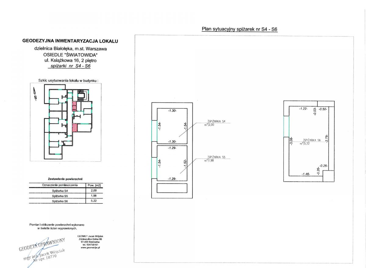 • Komórka lokatorska (spiżarka S6) – ok. 5,22 m²
